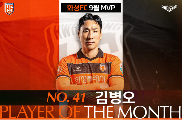 2일 화성FC는 "베테랑 공격수 김병오 선수가 팬 투표를 통해 2025시즌 9월 월간 MVP로 선정됐다"라고 밝혔다.