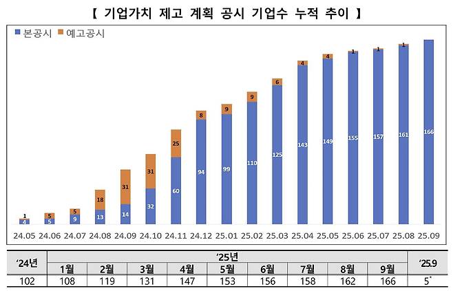지난달 기업가치 제고 계획을 신규 공시한 기업은 5곳으로 집계됐다.
