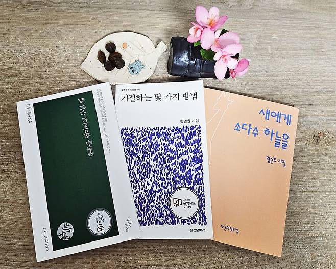 | ▲ 안양작가회의 안차애 시집 <초록을 엄마라고 부를 때>, 한명원 시집 <거절하는 몇 가지 방법>, 황은주 시집 <새에게 소다수 하늘을> |