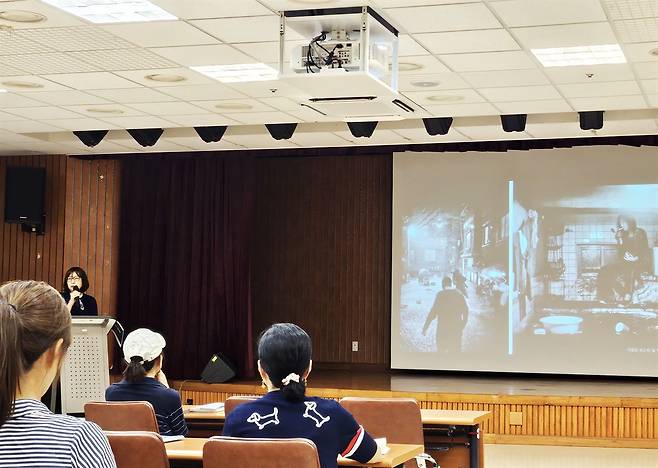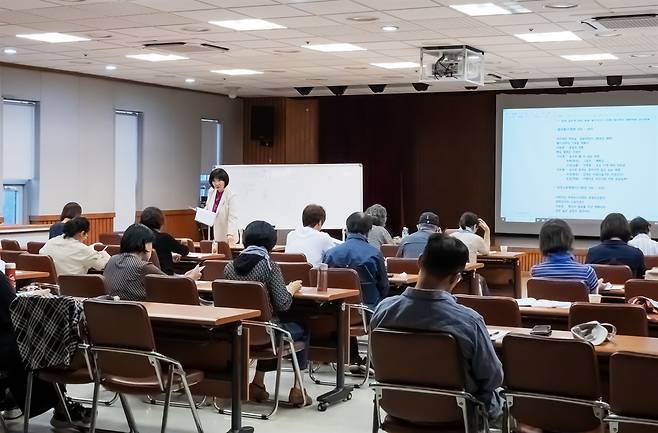 | ▲ 황은주 시인 2012년 중앙일보 중앙신인문학상으로 등단, 석수도서관에서 진행 중인 ‘안양의 길을 걷다’ 1회차 수업의 모습 |