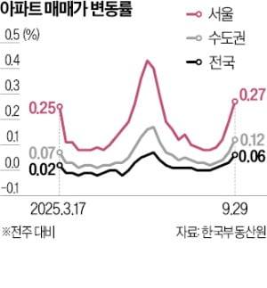 윤수민 농협은행 부동산전문위원은 “서울은 새 아파트와 재건축 추진 단지 모두 가격이 빠르게 오르며 매물이 사라지고 있다”며 “6·27 규제 전과 비슷한 수준의 상승세”라고 말했다.