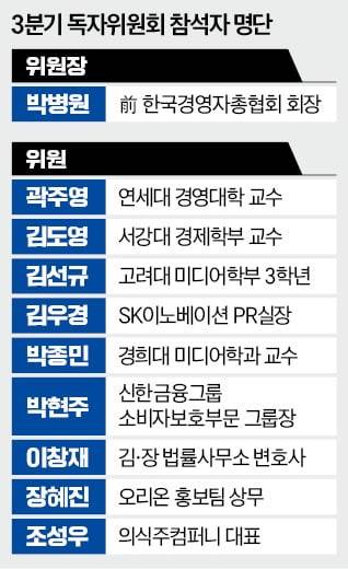 이날 회의는 박병원 한경 독자위원회 위원장(전 한국경영자총협회 회장)이 주재했다. 김도영(서강대 경제학부 교수), 이창재(김·장 법률사무소 변호사), 김우경(SK이노베이션 PR실장), 박종민(경희대 미디어학과 교수), 박현주(신한금융그룹 소비자보호부문 그룹장), 곽주영(연세대 경영대학 교수), 조성우(의식주컴퍼니 대표), 장혜진(오리온 홍보팀 상무), 김선규(고려대 미디어학부 3학년) 위원이 참석했다.