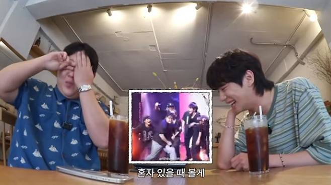 이준영은 "근데 진짜 너무 잘했다. 내가 형한테 영감 받아서 이후 해외스케줄에서 뒤로 구르는 이런 동작을 많이 했다"라며 당시 뒤로 구르기까지 했던 문상훈의 춤 영상을 소환했다.