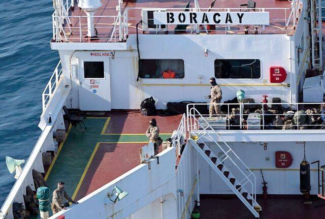프랑스 군인들이 1일(현지시간) 생나제르 앞바다에 정박 중인 베냉 선적의 유조선 보라카이호에 올라 수색하고 있다. 러시아산 원유 밀수출에 이용되는 러시아 '그림자 함대'로 의심받는 유조선이다. 특히 이 배는 최근 덴마크 영공을 침범한 드론의 발사 플랫폼으로 사용됐을 가능성이 제기됐다.