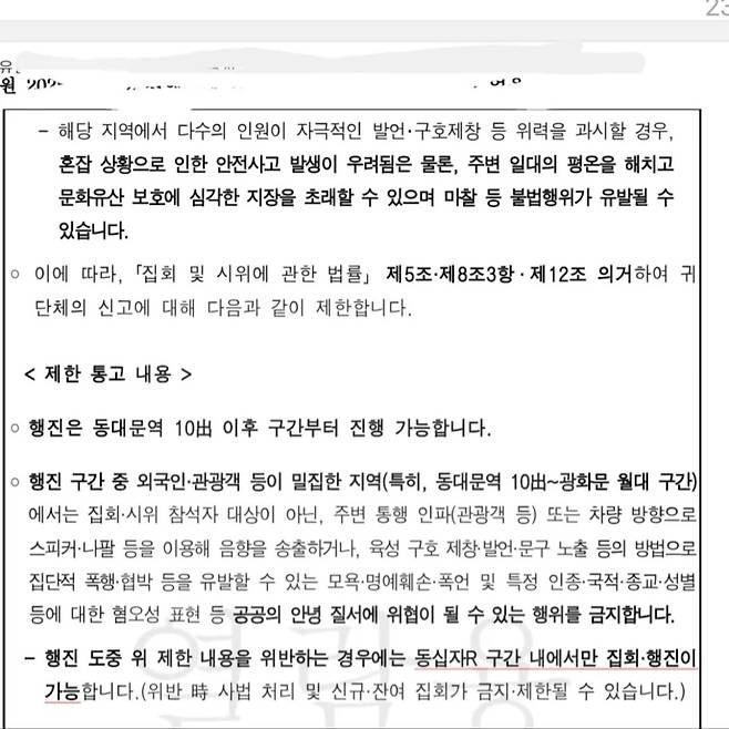| ▲ 극우 단체 자유대학의 개천절 집회를 두고 서울종로경찰서는 '혐중 구호' 사용을 금지하는 제한 통고를 내렸다고 1일 밝혔다. ⓒ스레드 |