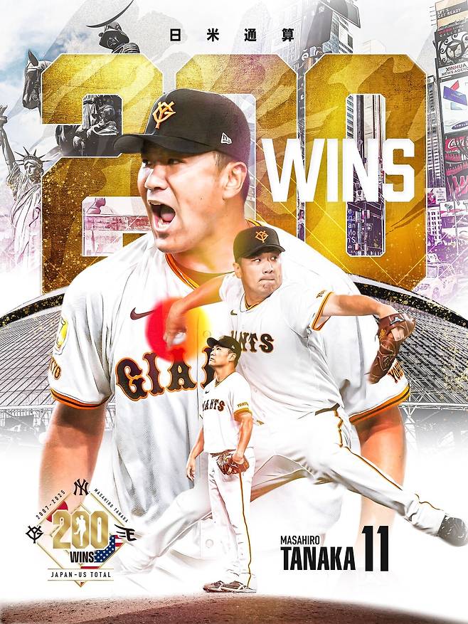 공교롭게도(?) 같은 날 일본에서도 기념비적인 경기가 열렸다. 미일 통산 199승을 기록 중이던 다나카가 3전 4기 끝에 마침내 200승을 달성한 것이다.