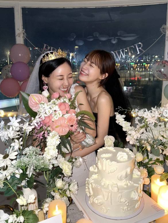 공개된 사진 속에는 허송연 허영지 자매의 브라이덜 샤워 현장이 담겼다. 한강이 내다보이는 선상에서 화려한 파티를 열어준 허영지. 두 사람의 절친인 래퍼 자이언트 핑크도 함께 해 자리를 빛냈다.