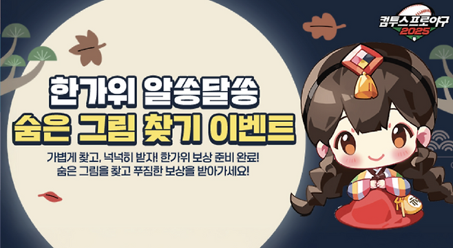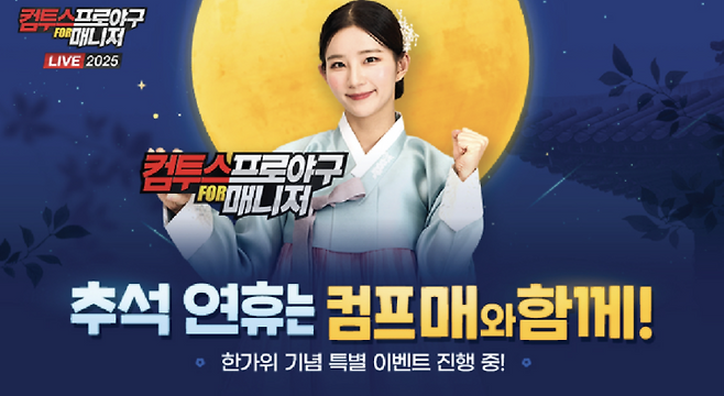 KBO 리그 기반 야구 게임 3종도 추석 이벤트를 마련했다. '컴투스프로야구V25'는 오는 5일부터 7일까지 5,000 스타를 지급한다. 또한 특별 출석과 선물 상자를 통해 임팩트 선수카드, 시그니처 보호권, 시즌 카드 랜덤팩 등을 제공한다. '컴투스프로야구2025'는 일일 미션으로 얻은 '보름달' 재화를 활용해 한계돌파권, 고유능력 추가 강화권을 지급한다.
