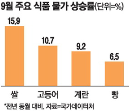 한편 쌀값 외에 소고기·돼지고기 등 주요 축산물 물가도 지난달 상승세를 이어갔다. 지난달 돼지고기는 전년 동월 대비 6.3%, 국산 소고기는 4.8%, 수입산 소고기는 2.2% 상승했다. 수입산 소고기의 경우 8월(1.8%)보다 상승폭이 커졌다.