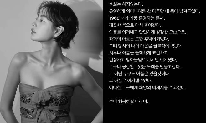 나나는 어머니가 태어난 연도이자 어머니에 대한 애틋한 마음이 담겨있는 숫자 '1968'을 적은 다리 타투만 지우지 않고 3년 만에 전신 타투를 지우게 됐다.