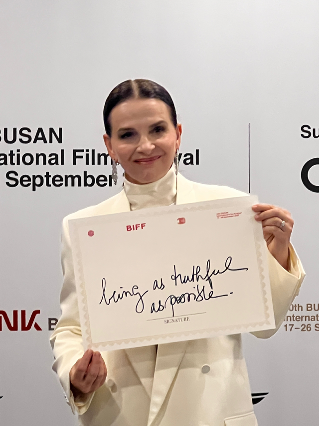 첫 장편 연출작 '인-아이 인 모션'을 부산국제영화제에서 선보인 배우 줄리엣 비노쉬는 "영화의 힘은 가능한 진실되게 살아가는 것"이라는 답을 내놨다.