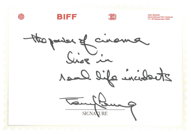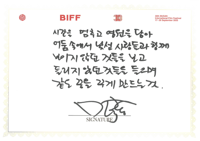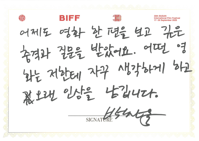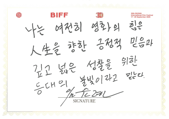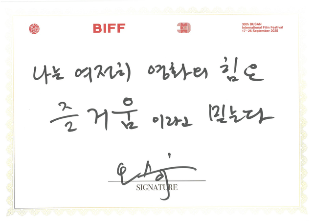 제30회 부산국제영화제가 9월17일부터 26일까지 열흘간 7000여명의 게스트, 22만여명 관객과 함께 성황리에 마무리됐다. 부산국제영화제는 21인의 시네아티스트에게 ‘영화의 힘’이 무엇인지 질문을 건넸고, 친필로 답변을 받았다.