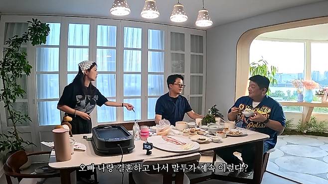 우선 김지민은 고기를 굽던 중 남편 김준호의 태도에 불만을 드러냈다. 그는 "오늘 말투가 상당히 불량하다"며 "결혼 전에는 안 그랬는데 결혼 후에는 자꾸 '야, 네가 해'라고 한다. 말투가 계속 이렇다"고 토로했다.
