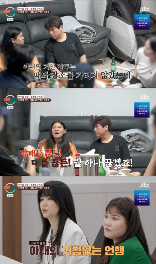 남편은 첫 명절에 시아버지가 *가족이 늘었으면 좋겠다"고 2세를 언급했을 때, 아내가 "아버님 그럴 일 없습니다. (남편) 대기가 담배 피워서"라고 말했다고 폭로해 모두를 놀라게 했다. 아내는 "(남편이) 담배를 끊든 대를 끊든. 뭐든 끊겠죠"라는 말을 했다고 시인했다.