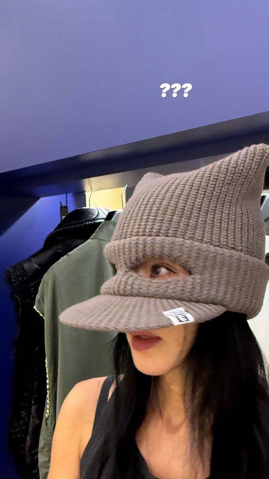 엄정화가 착용한 모자는 니트 소재로 짜여진 디자인으로, 일반적인 모자와는 확연히 다른 형태를 자랑했다.