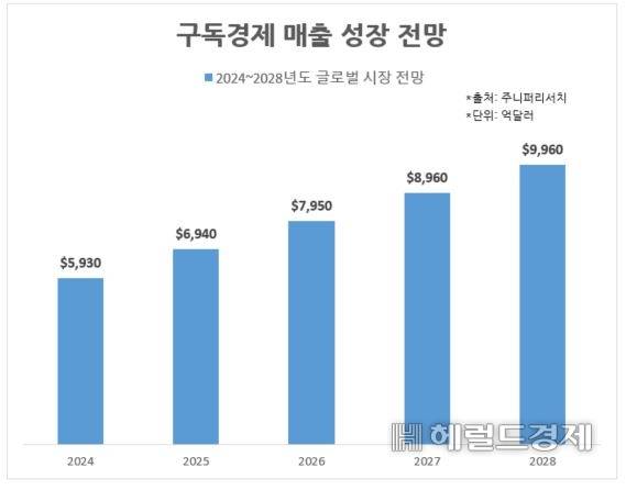 구독 서비스는 본 제품보다 부가 혜택과 프리미엄 기능에서 수익을 창출한다. 이러한 경향성은 각종 지표에서도 나타난다. 주니퍼리서치에 따르면 글로벌 구독경제는 지난해 5930억 달러 규모에서 2028년에는 9960억 달러에 이를 것으로 전망된다.