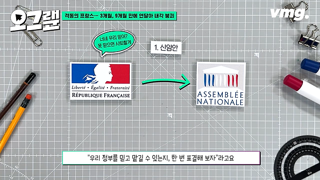 격동의 프랑스... 3개월, 9개월 만에 연달아 내각 붕괴 일단 수많은 프랑스 시민들의 공분을 낳았던 내년도 예산안을 제안한 바이루 총리는 사퇴했습니다. 바이루 총리는 이 예산안을 두고 프랑스 의회에 신임 여부를 표결에 맡기는 승부수를 던졌는데, 여기서 부결되어 버렸거든요. 이 표결이 부결되면 총리는 헌법에 따라 사임서를 대통령에게 제출해야 합니다.