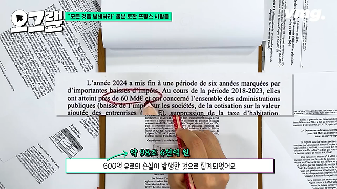 프랑스 최고 감사기관인 회계법원에서 발표하는 공공재정 보고서가 있는데 올해 보고서를 보면 마크롱 대통령의 감세 정책으로 600억 유로의 손실이 발생한 것으로 집계되었어요.