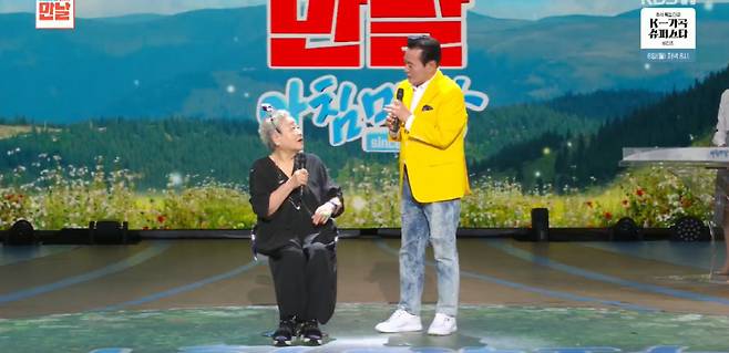 게스트로 초대된 강부자는 김성환, 김연자의 부축을 받아 무대에 올라 따뜻한 인사를 건넸다