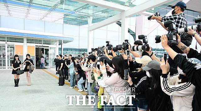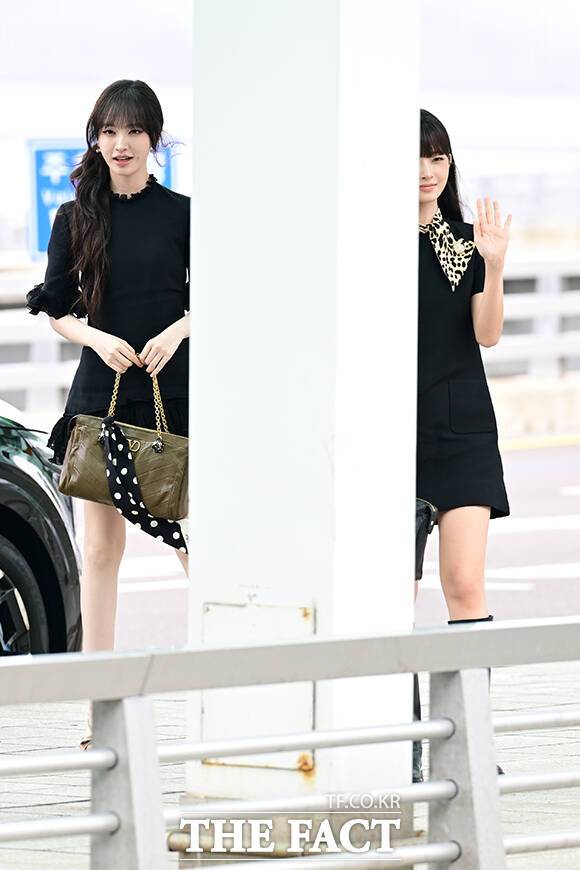 [더팩트ㅣ인천국제공항=남윤호 기자] 그룹 아이브의 리즈와 레이가 3일 오전 해외 일정 참석을 위해 인천국제공항 출국장으로 향하며 취재진과 팬들에게 포즈를 취하고 있다.