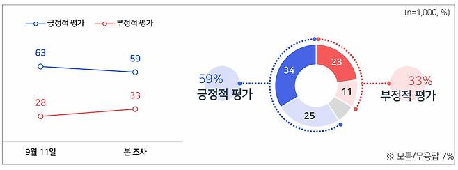 - [여론조사] '추석 민심' 이 대통령 국정 지지율, 긍정 59%·부정 33%