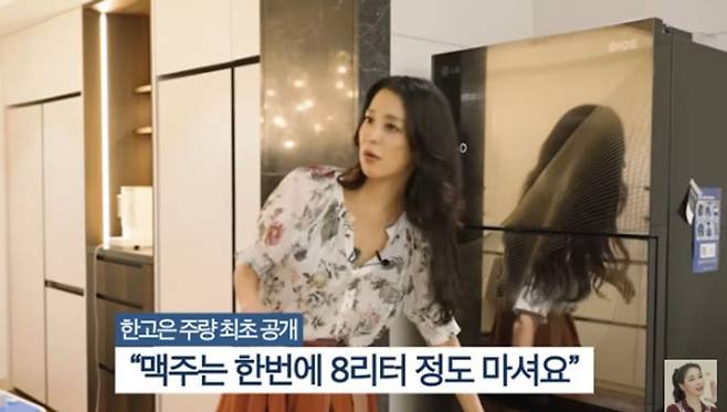 이어 냉장고에 들어있는 술을 공개하는 와중에 주량에 대한 질문이 나왔다. 이에 한고은은 “한때는 꽤 괜찮았는데 요즘은 나이가 먹어서 주량이 많이 줄었다. 맥주는 한 번에 8리터 정도 먹는 것 같다”라고 털어놨다. “물보다 더 많이 먹는 것 아니냐”라며 놀라는 제작진의 반응에 “나도 물 8리터를 먹으라고 하면 못 먹을 것 같다. 근데 맥주는 들어간다. 그게 너무 신기하다”라고 털어놨다.