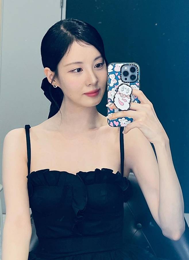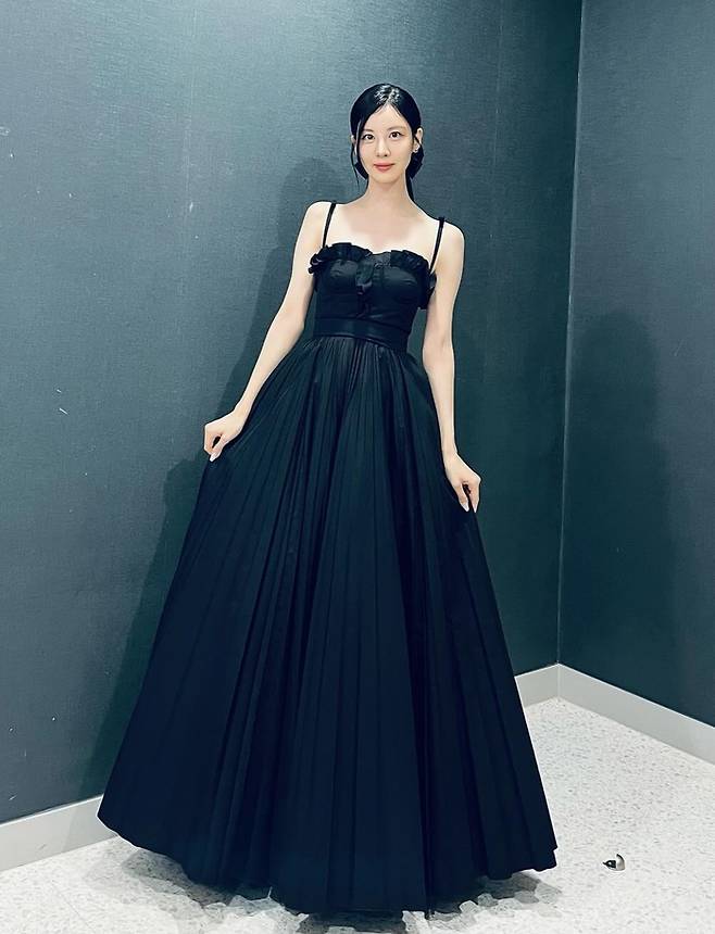 사진 속 서현은 어깨끈이 드러난 블랙 롱 드레스를 입고 여신 같은 비주얼을 자랑했다.