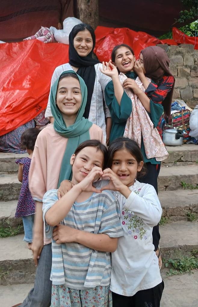 | ▲ 아프간 아이들 두번째 방문시 사단법인 아디 활동가들에게 한국식 하트모양 포즈를 취하고 있는 아프간 난민 여성 아이들 |
