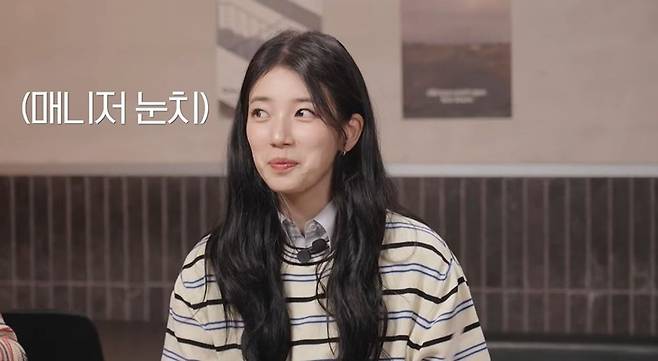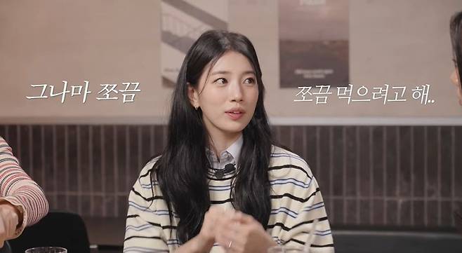 수지는 "어떻게 유지하냐"는 혜리의 질문에 "난 솔직히 식단을 하나도 안 하는데, 그나마 조금 먹으려고 한다"라고 말하다 매니저 눈치를 봤다.