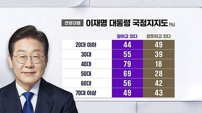 연령대별로 보면, 20대 이하와 60대 이상에선 긍정과 부정 평가가 오차 범위 안에 있었습니다.
