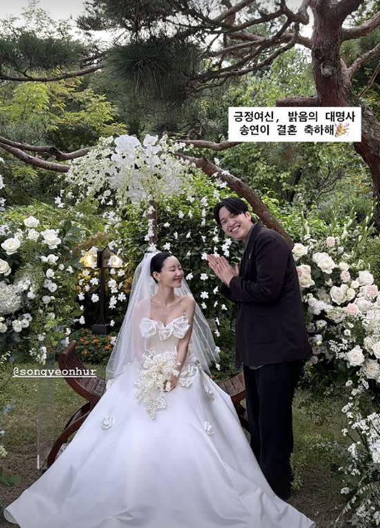 하객으로 참석한 유재필은 개인 채널을 통해 "긍정여신, 밝음의 대명사 송연이 결혼 축하해"라며 결혼식 사진을 공개했다. 레이디제인도 "아름답다. 축하해"라며 꽃으로 뒤덮인 야외 결혼식 현장 사진을 업로드했다.