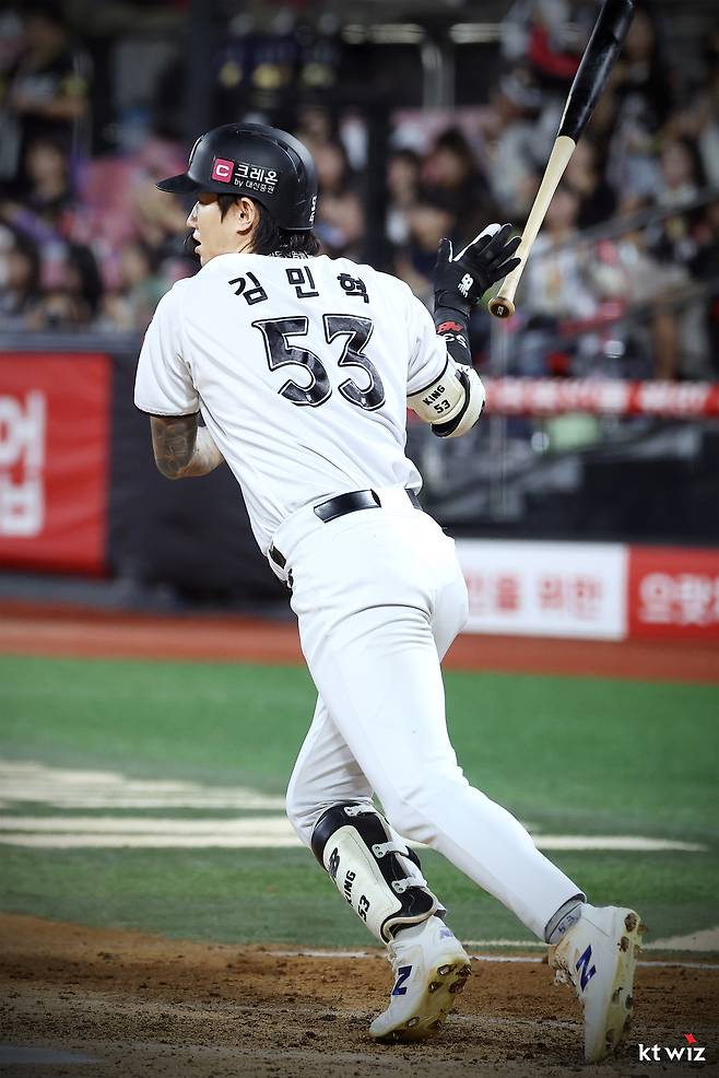 이날 경기는 KT의 낙승이 예상됐다. 한화의 선발 라인업은 이원석(중견수)-권광민(1루수)-최인호(좌익수)-노시환(3루수)-이진영(지명타자)-이도윤(유격수)-김태연(우익수)-허인서(포수)-황영묵(2루수). 이미 2위로 플레이오프 진출이 확정된 한화로선 무리할 필요가 없었다. 4번 타자로 나선 노시환을 제외하면 모두 준주전 혹은 백업급 선수들이었다. 선발투수도 10승과 규정이닝을 채우기 위해 등판할 수도 있었던 류현진이 마운드에 오르지 않고, 올 시즌 1군 등판이 전무했던 4년차 우완 박준영이 나섰다. 힘을 쫙 뺀 라인업이었다. 반면 이날 경기에 올 시즌 풍흉이 결정될 수 있는 KT는 선발로 오원석을 냈다. 선발 라인업도 허경민(3루수)-김민혁(좌익수)-안현민(우익수)-강백호(지명타자)-황재균(1루수)-장성우(포수)-앤드류 스티븐슨(중견수)-김상수(2루수)-장준원(유격수)으로 주전을 전원 냈다. 선발 오원석 뒤에 패트릭 머피와 고영표까지 대기시켰다. 누가 봐도 KT의 우세가 예상됐다. ,