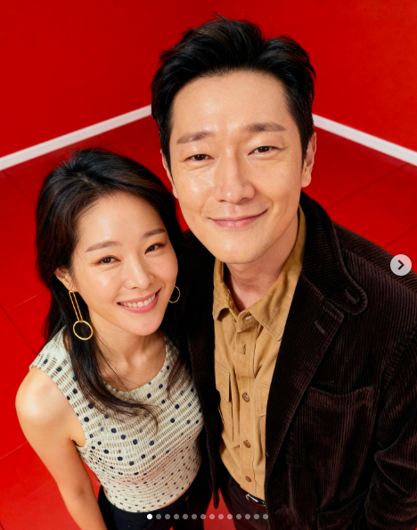 공개된 사진에는 미자가 배우 손석구와 카메라를 향해 웃고 있는 모습이 담겼다.