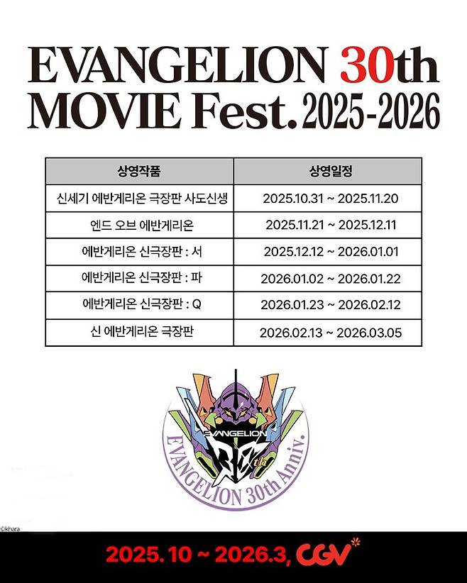 (MHN 장민수 기자) 인기 애니메이션 '에반게리온'이 30주년을 맞아 '무비 페스티벌 2025-2026'을 개최하고 팬들과 만난다.