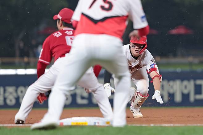 윤도현은 1회말 1사에서 SSG 선발 송영진을 상대로 장타성 타구를 날렸다. 이후 1루와 2루를 차례로 통과했고, 3루 헤드퍼스트 슬라이딩을 시도했다. 이 과정에서 손가락을 다쳤다.