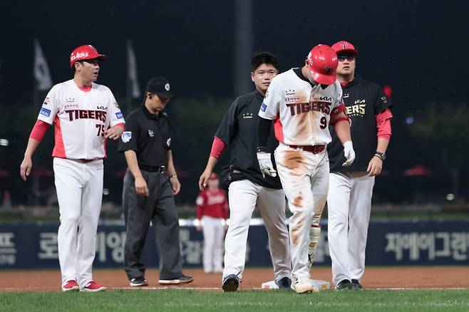 곧바로 구단 트레이너가 그라운드에 나와 윤도현의 몸 상태를 체크했다. 윤도현은 더 이상 경기를 이어갈 수 없는 상황이었고, 결국 대주자 김규성과 교체됐다.