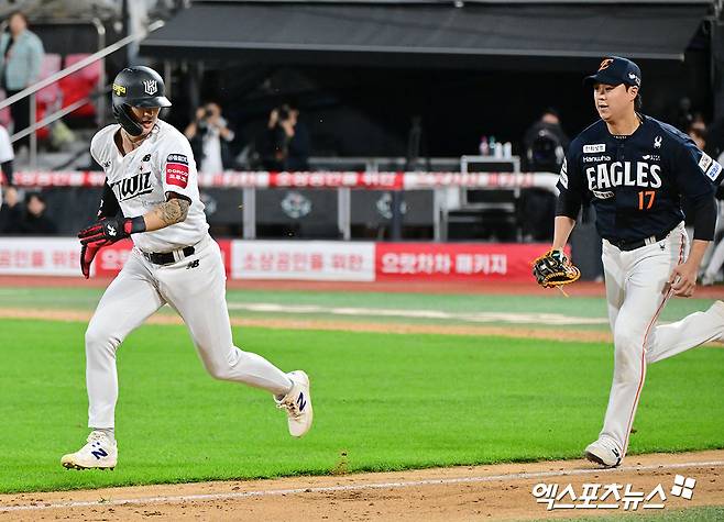 그러나 패트릭마저 김태연에게 적시타를 맞으면서 오원석의 실점이 불어났다. 패트릭은 이어진 2, 3루에서 허인서를 3루수 땅볼로 돌려세웠지만 황영묵과 무려 9구 승부를 벌인 끝에 우적 적시타를 허용하면서 KT가 2점을 더 잃었다.