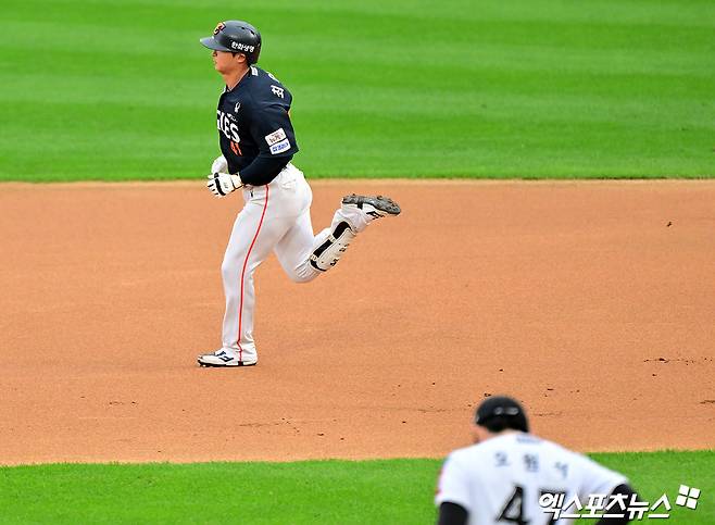 선발 오원석은 선두타자 이원석에게 초구 우전안타를 허용한 후 권광민에게도 우전안타를 맞으면서 무사 1, 3루 위기에 몰렸다. 그리고 3번타자 최인호 타석, 볼카운트 1-1에서 3구 132km/h 슬라이더가 통타를 당하며 오른쪽 담장을 넘어가는 3점 홈런이 됐다. 점수는 3-0.