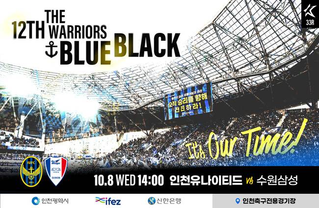 인천유나이티드(대표이사 조건도)가 오는 10월 8일(수) 오후 2시 인천축구전용경기장에서 수원삼성과 하나원큐 K리그2 2025 33라운드 홈경기를 치른다.