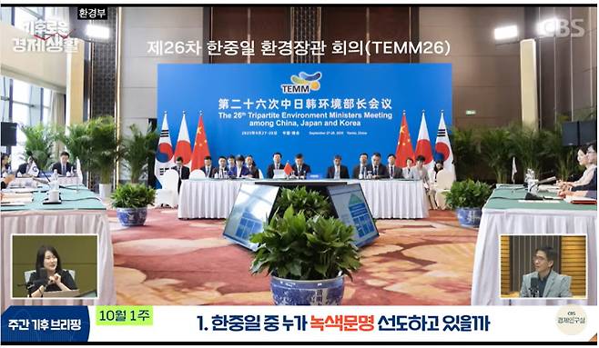 ◇ 최서윤> 말씀하신 제조업 경쟁력을 유지하면서 탈탄소를 해 나가는 게 한국, 중국, 일본 세 나라의 공통된 과제예요. 그러다 보니까 이번 회의에서도 보면요. 이게 1999년부터 쭉 진행해 온 회의인데 과거에는 원래 미세먼지 공동대응 이런 게 의제가 주축이 됐어요. 그런데 이번에는 기후변화 대응을 같이하는 방향으로 협력 의제가 확대되고 있다는 평가를 받았고요.