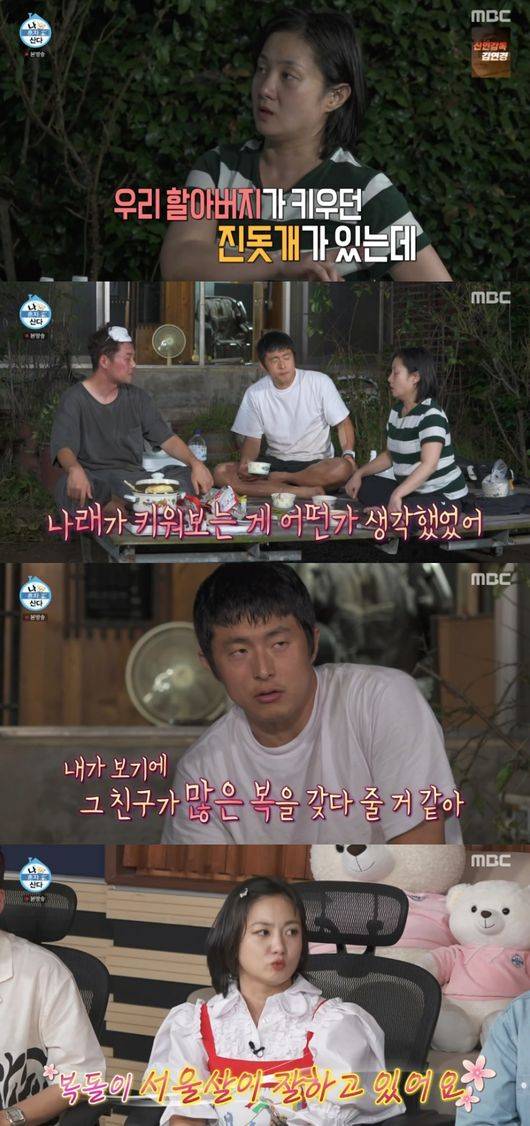 이날 조부모님 집을 정리 후 저녁을 먹던 중 박나래는 “우리 할아버지가 키우던 진돗개가 있다. 복돌이라고. 할아버지가 이름을 지어주셨다. 2년 반을 키웠다”라고 밝혔다.