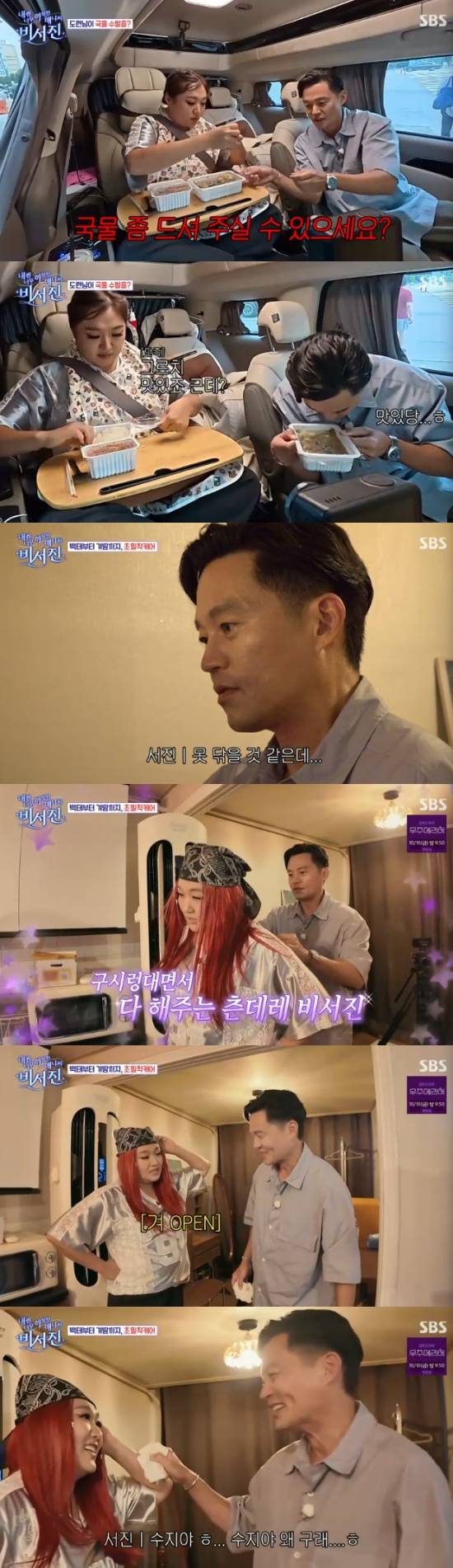 특히 이서진은 차 안에서 순댓국을 먹는 이수지를 위해서 국물이 넘치지 않도록 국물을 마셔주는 것은 물론이고 이수지의 땀을 닦아주고, 겨드랑이 땀을 선풍기로 식혀주는 등 '프로 수발러'의 모습을 보여줘 눈길을 끌었다.