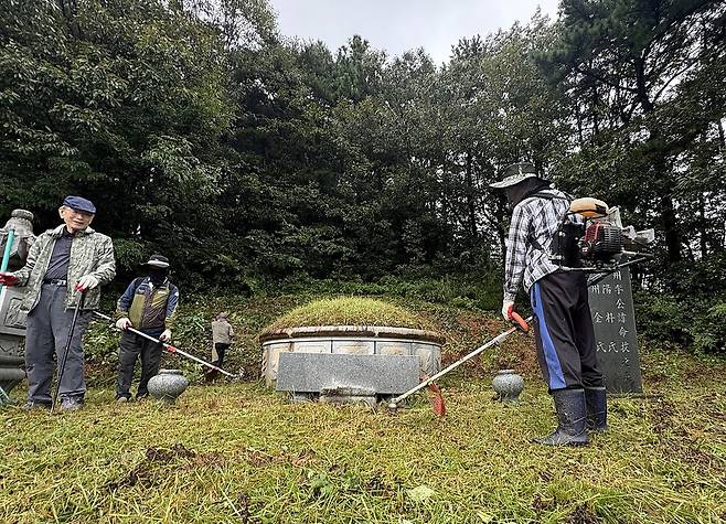 한가위를 앞둔 2025년 9월20일 충북 충주시 주덕읍에서 후손들이 모여 풀을 베고 묘를 정성스레 다듬고 있다. 예전에 자주 보이던 벌집은 사라졌지만, 더 높고 무성하게 자란 풀을 보며 이전과 같지 않은 자연의 모습을 걱정하기도 한다. 일을 멈추면 자연스레 집안의 대소사 이야기가 오간다. 승진 소식, 조카 결혼, 건강 문제로 참석하지 못한 형님 안부까지.