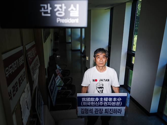 독립지사 후손 10여 명은 지난 8월 20일 충남 천안시에 위치한 독립기념관에서 '김형석 퇴진'을 요구하며 농성에 돌입했다.