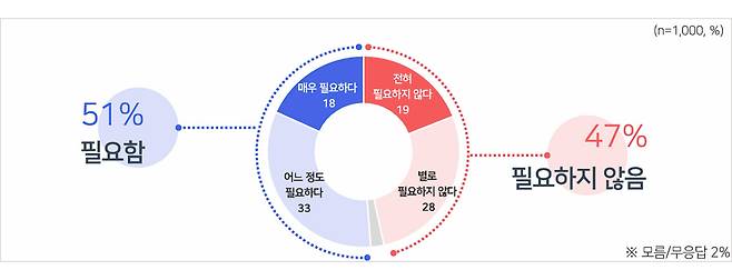 먼저 통일 필요성에 대해선, '필요하다' 51%, '필요하지 않다' 47%로 집계됐습니다.
