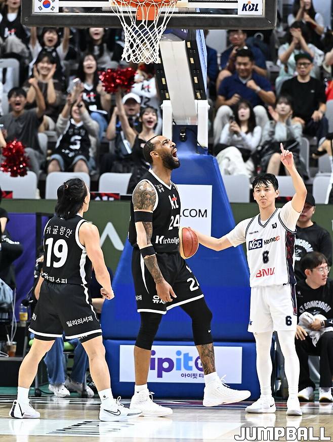 분위기를 바꾼 김선형의 포효… '5명 두 자릿 수 득점' KT, KCC 완파하며 홈 개막전 승리
