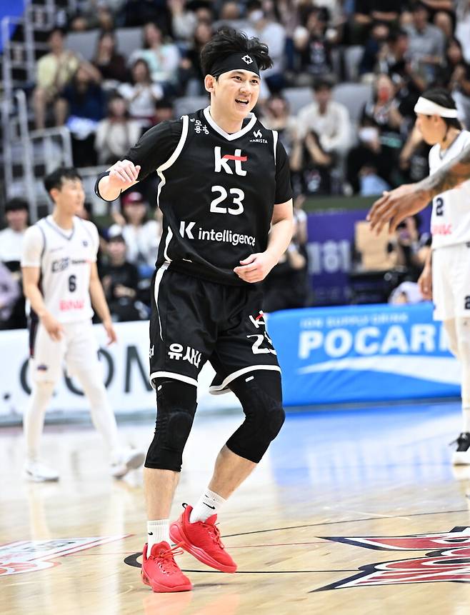 수원 KT는 4일 수원KT소닉붐아레나에서 열린 2025~2026 LG전자 프로농구 정규리그 경기에서 부산 KCC를 85-67로 꺾었다. 시즌 첫 승과 함께 KCC전 6연승을 이어갔다.