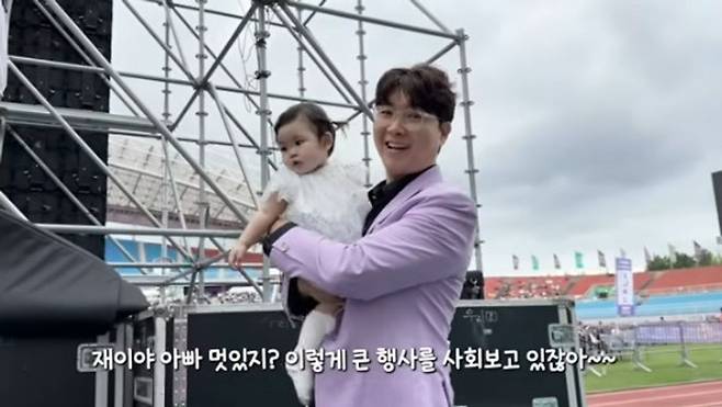 [TV리포트 = 하수나 기자] 개그맨 박수홍이 11개월 딸 재이와 함께 행사장을 찾아 아빠가 일하는 모습을 보여주며 뿌듯해했다.