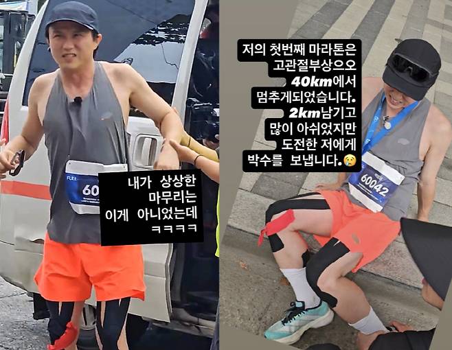 앞선 3일 박성광은 인생 첫 마라톤에 도전했지만, 고관절 부상으로 40km에서 포기하게 됐다고 전했다.