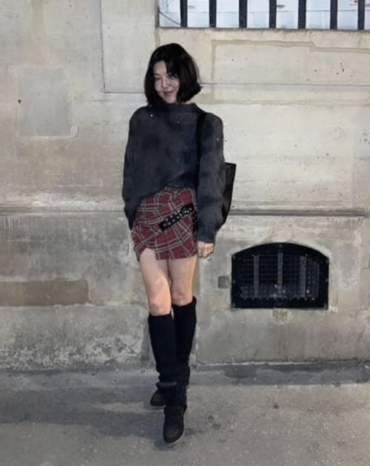 공개된 사진 속 한혜연은 이자벨 마랑 컬렉션 의상을 착용하고 파리의 거리에서 감각적인 가을 패션을 선보였다. 회색 톤의 니트 스웨터에 체크 미니스커트, 롱부츠를 매치해 특유의 시크한 분위기를 완성했다. 여기에 블랙 벨트와 미니백을 더해 트렌디하면서도 자유분방한 감성을 완벽히 소화했다.